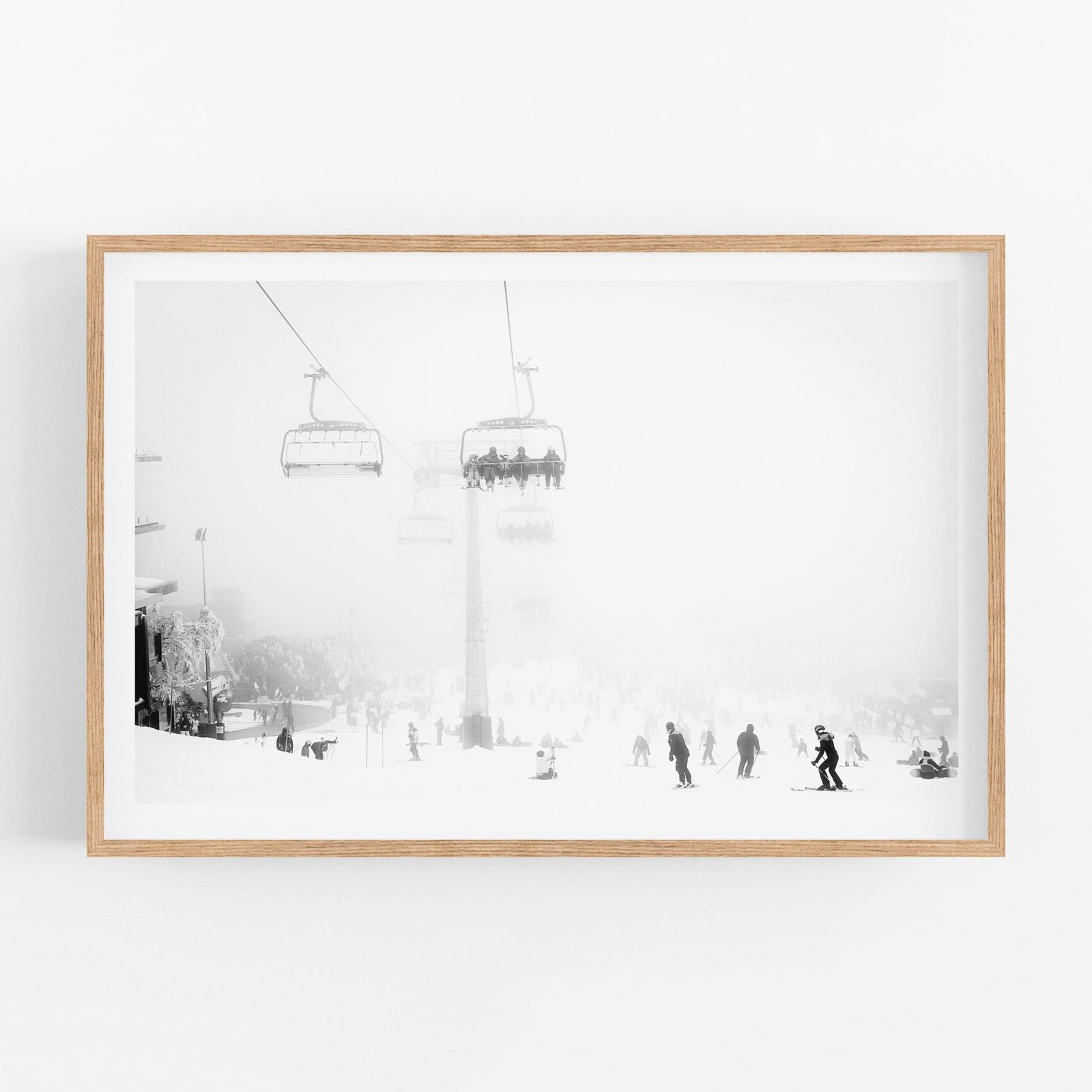 The Whitest Days of Winter collection was captured on a particularly inclement winter's day on Mt Buller in Victoria's high country. Hoping for a 'blue sky' day to capture a series of colourful snow scenes, instead, the rolling fog, and at times almost white-out conditions created a sense of mystery and was perfect for what became this series of black & white prints. The skiis and snowboards, the hint of buildings or chairlifts create a contrast against the white of the snow and fog, and tell the story of how, regardless of the weather, this is one of our favourite winter pastimes. For more information on ordering these prints, please see the FAQ section remember to drop me a line if you still have questions.