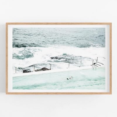 The Bondi Vintage Series of images were shot in Sydney in 2014 at the world famous Bondi Beach and Icebergs Ocean Pool. To make such a well-photographed location more distinctive to my view, I searched for a way to show both the beach and pool in a way that was unique, and looked to the 1960's photographs of Slim Aarons for inspiration. His muted vintage tones, especially of water, and of his subjects seemingly unaware of his presence led me to play around with desaturating the colours and adding green tones in the post-production process, to change what is usually a very bright, highly saturated blue scene. I feel this gives the images a sense of timelessness, of not quite knowing which era the belong to. For more information on ordering these prints, please see the FAQ section remember to drop me a line if you still have questions.
